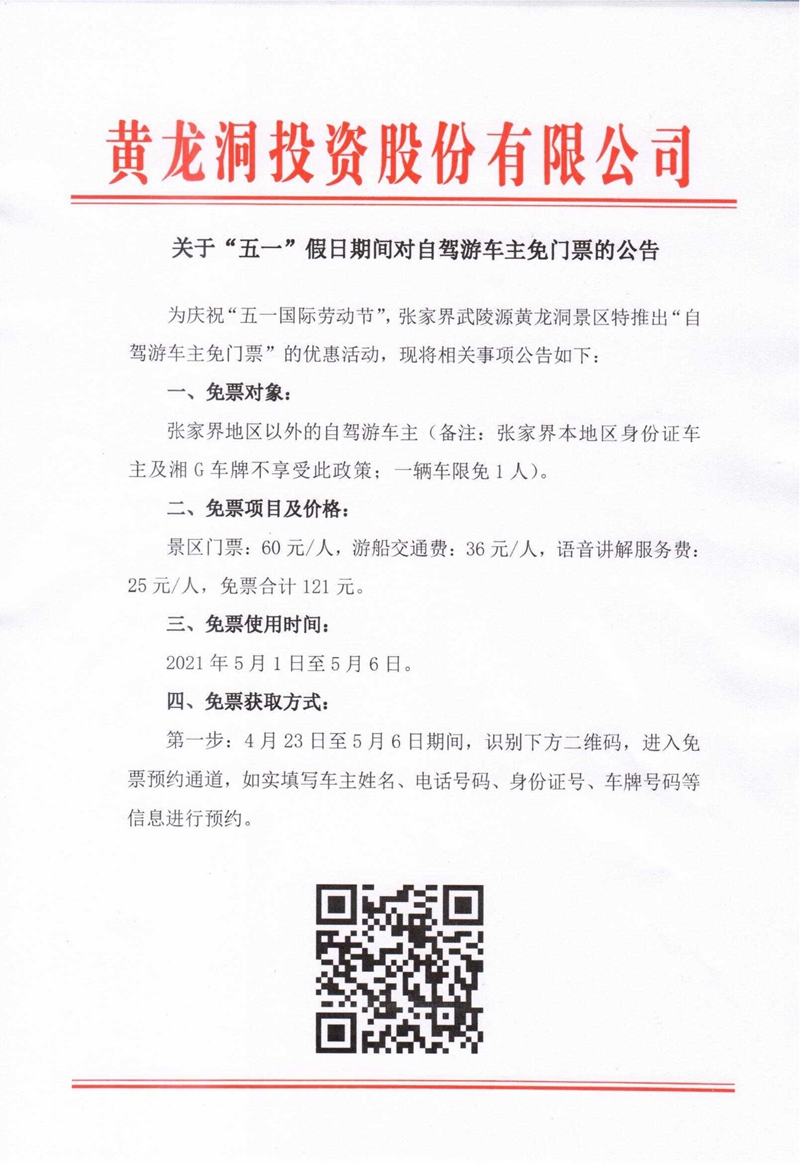 關(guān)于“五一”假日期間對(duì)自駕游車主免門票的公告