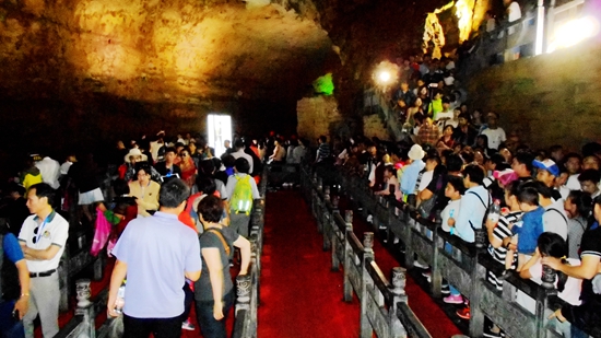 黃龍洞景區(qū)游客現(xiàn)錯(cuò)峰潮